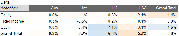 Delta from target allocation, 31 July 2022
