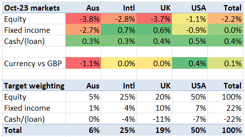 As well as a decent dollop of dividends in October, I had a small bit of ‘windfall’ (ish) liquidity this month, as I took advantage of an opportunity to sell some of an angel shareholding via a ‘secondary’ transaction – i.e. selling some shares to another investor. This investment was made under EIS, so is tax free. It’s the equivalent of a few months’ worth of my interest charges, so it’s welcome, but not needle-moving. There are precious few exits / liquidity opportunities in the private/angel world at the moment, which was a factor in deciding to take up the offer to partially offload. For more insight into my psychology check out my recent blog post on Feeling Broke.