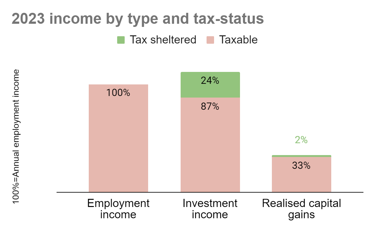 Historically I would have reinvested all this investment income. However 2023 saw my cost of living (including my debt interest costs, some off balance sheet investments, pension contributions, travel extravagances and such like) exceed my taxable employment income, so I found myself dipping into the investment income on a regular basis. This does not feel great to me – as reflected in my ‘feeling broke’ blog post – though I do remain very much in control of matters. Almost all my remaining income in unsheltered accounts went on paying debt interest and repayments.