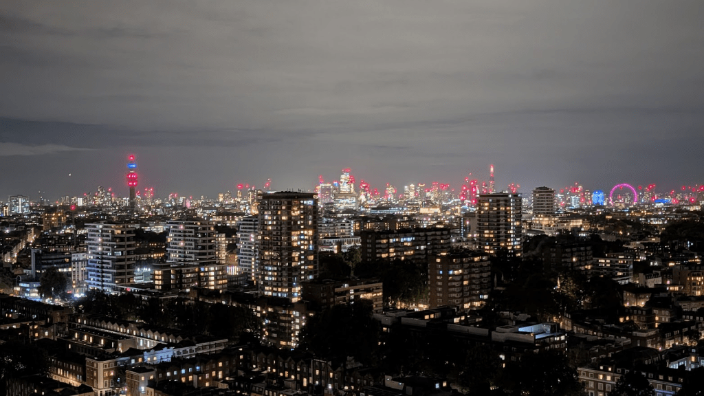 The evenings are drawing in. But that does afford a new view of central London – there aren’t too many of those around – at the new development at Paddington station.