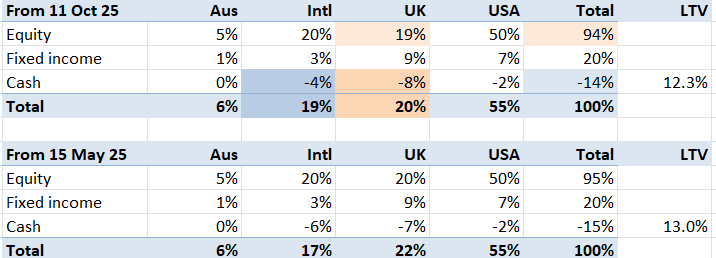 Given the widespread worries about us being in an ‘AI bubble’ – which I share – I am taking the opportunity to tighten my target leverage by one more % point.