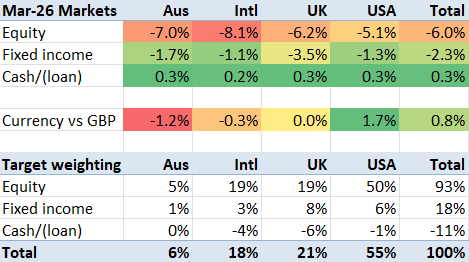 In any case, the stock markets in March are a textbook response to global market jitters. Ironically, the USD has seen a flight to safety. But everything everywhere is down all at once, pretty much. Equities were down around 6%, and bonds were down around 2%. UK bonds were down even more with too much loose talk about energy bailouts.
